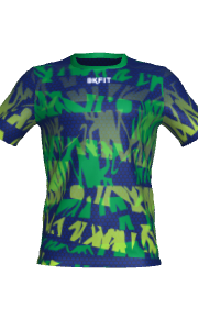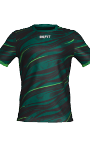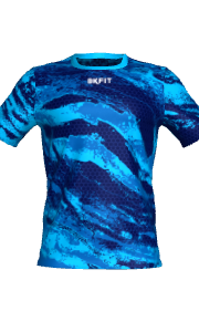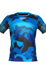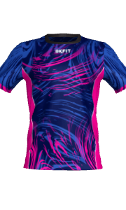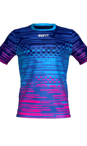 - Camiseta cuello redondo, manga recta, patrón multideporte