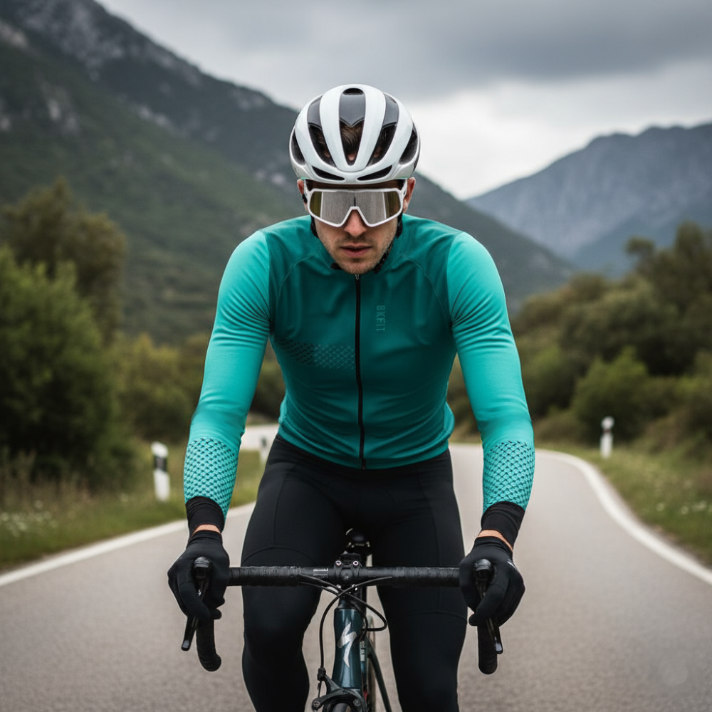 Maillot de manga larga con afelpado interior y aerodinámico, perfecto para estaciones intermedias.